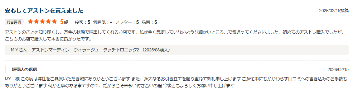 AstonMartin車に対しての深い知識と多くの引き出しに